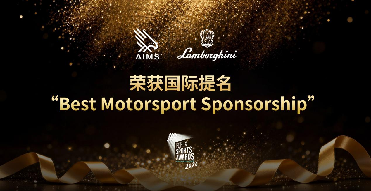 AIMS自2025年斩获“全球最佳足球赞助商”大奖后,近日与兰博基尼的跨界合作,被全球年度评选机构Forex Sports Awards,正式提名角逐 "2026 Best Motorsport Sponsorship"最佳赛车赞助奖。近日,AIMS与兰博基尼跨界合作,被全球年度评选机构Forex Sports Awards,正式提名角 "2026 Best Motorsport Sponsorship"最佳赛车赞助奖。